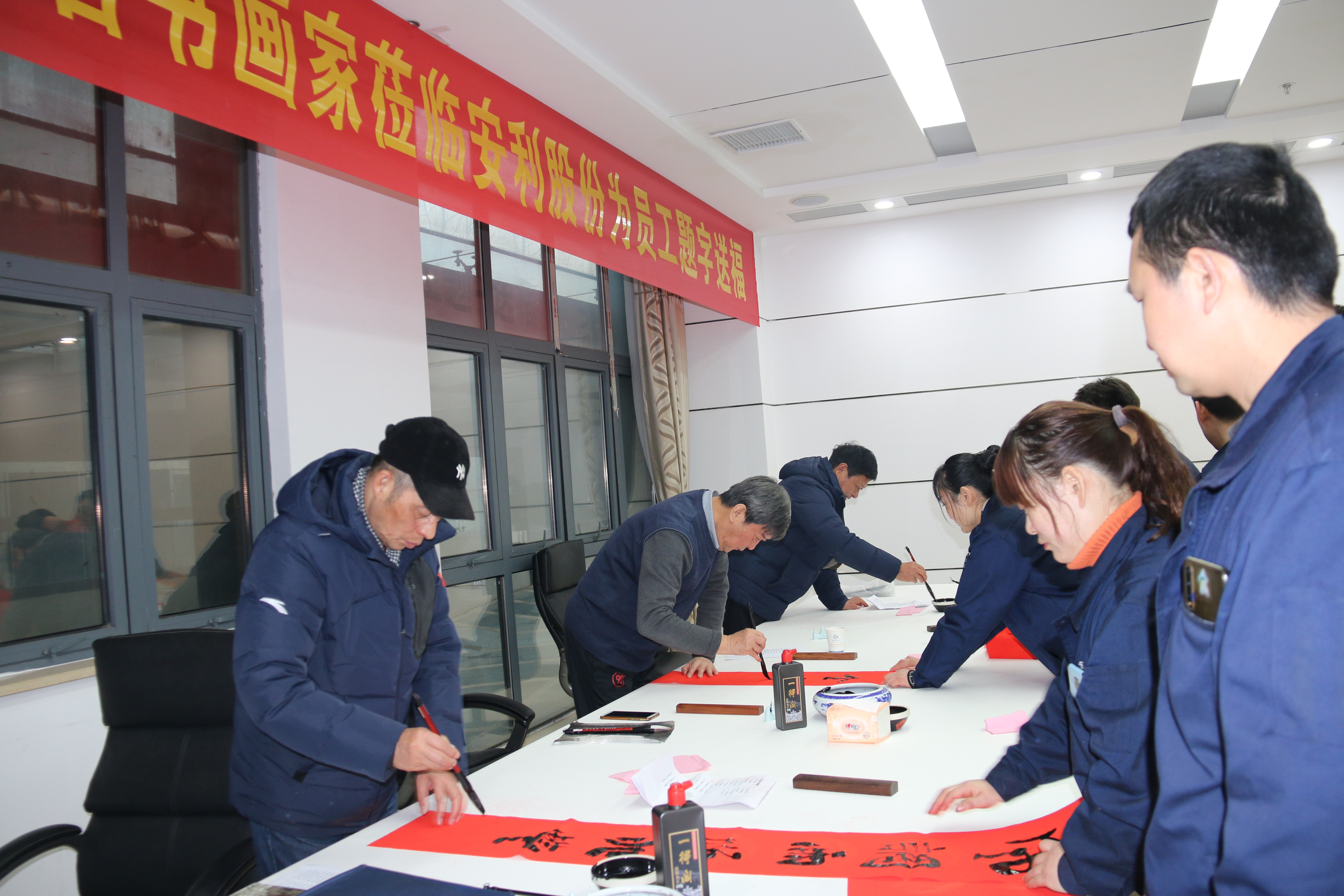 1月24日下午,安徽著名書畫家程傳如、方茂鴻、柯大林、廖新、張煜、隋鴻君、邵鑫等人,不畏嚴寒,冒著風雨,蒞臨安利股份(300218.SZ),給員工題字送福寫春聯,為民營企業發展鼓舞士氣,凝聚力量。