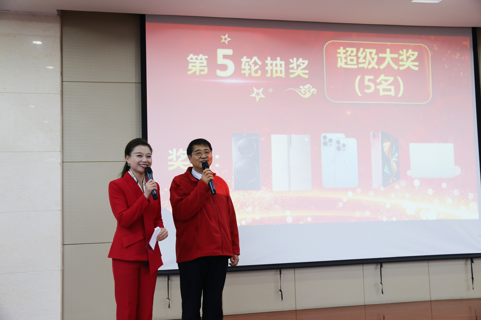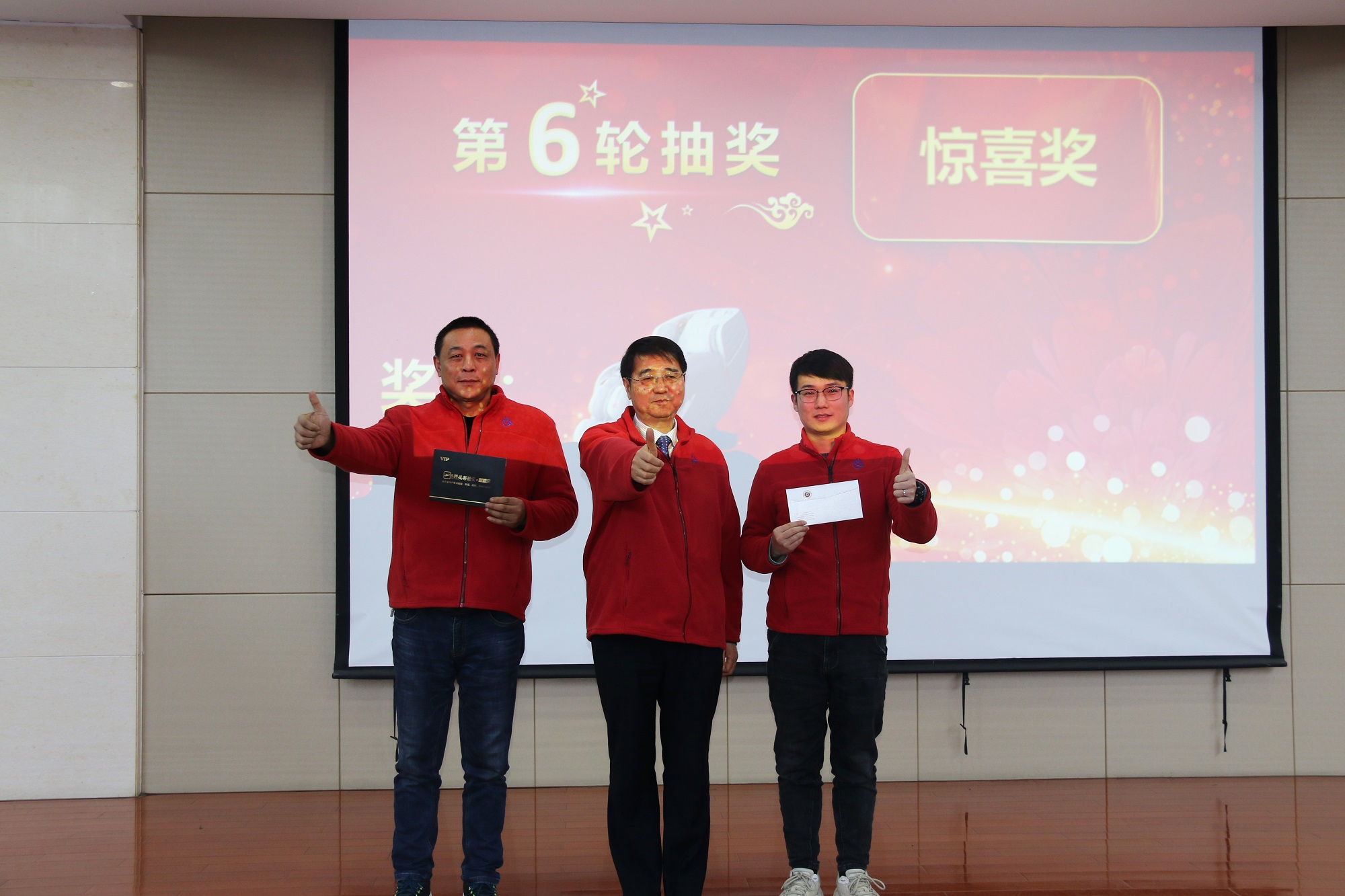 抽獎環節中穿插進行了兩個小遊戲,“正話反說”和“你劃我猜”的趣味互動讓大家興致高漲,不亦樂乎,點燃了全場熱情。會議中還播放了《努力讓員工“薪滿意足”——人事行政工作視頻》,表明了公司新的一年將從“增薪酬、促提升、謀福祉、暖人心、聚合力”五個方麵,著力推進員工關愛舉措的鮮明態度及堅定決心。