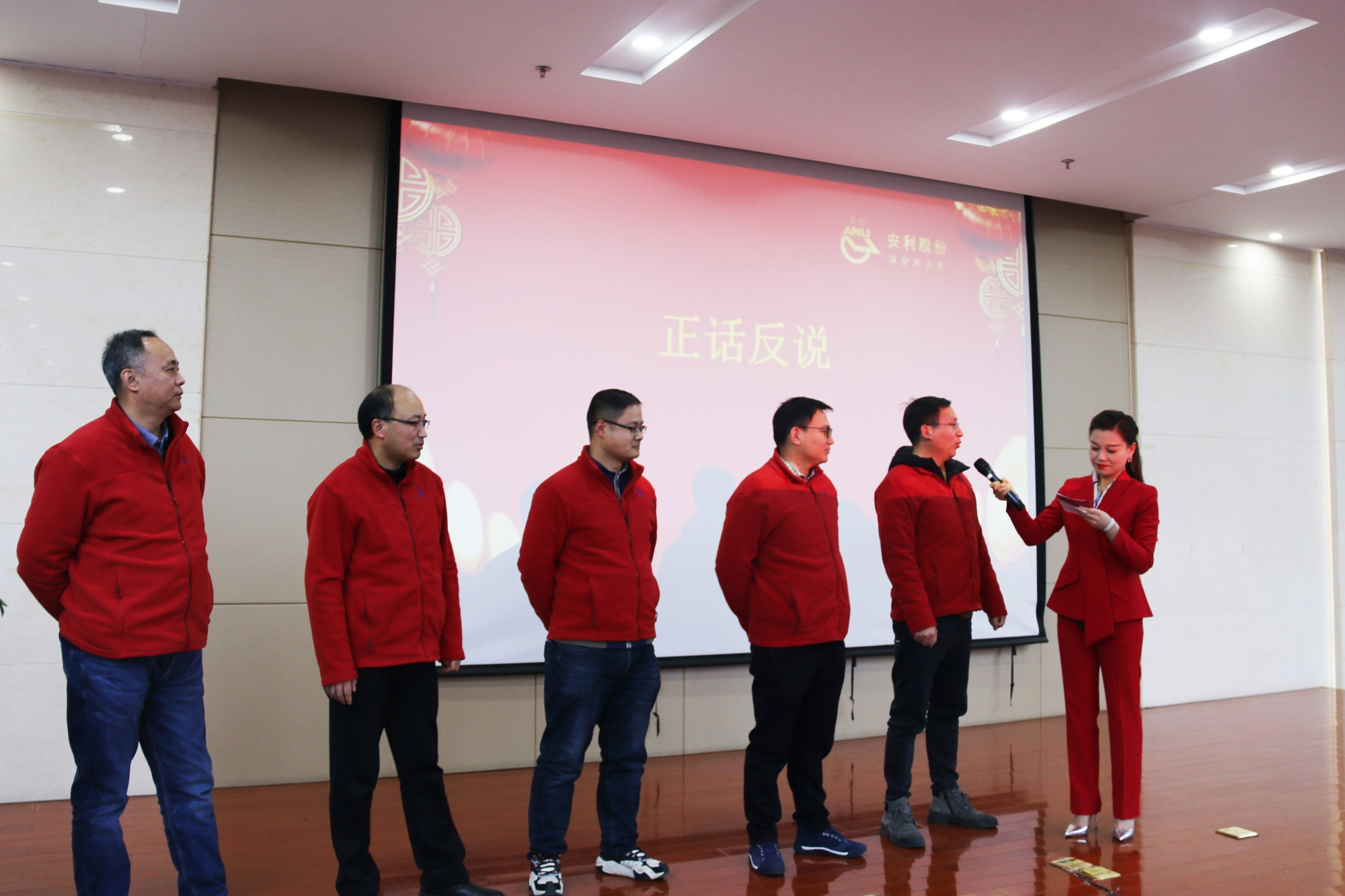 1月28日,臘月二十六,安利股份2022年新春聯歡表彰活動在安利工業園隆重舉行。公司董事長、總經理姚和平,副總經理王義峰、陳茂祥、胡東衛、黃萬裏、劉兵、劉鬆霞、陳薇薇、新材料公司總經理姚克儉,監事會主席胡家俊,成本管控高級總監李道鵬等公司高管,與經營管理和專業技術骨幹,以及一線員工代表參加活動,喜迎新春佳節,展望發展大計,共祝美好明天。