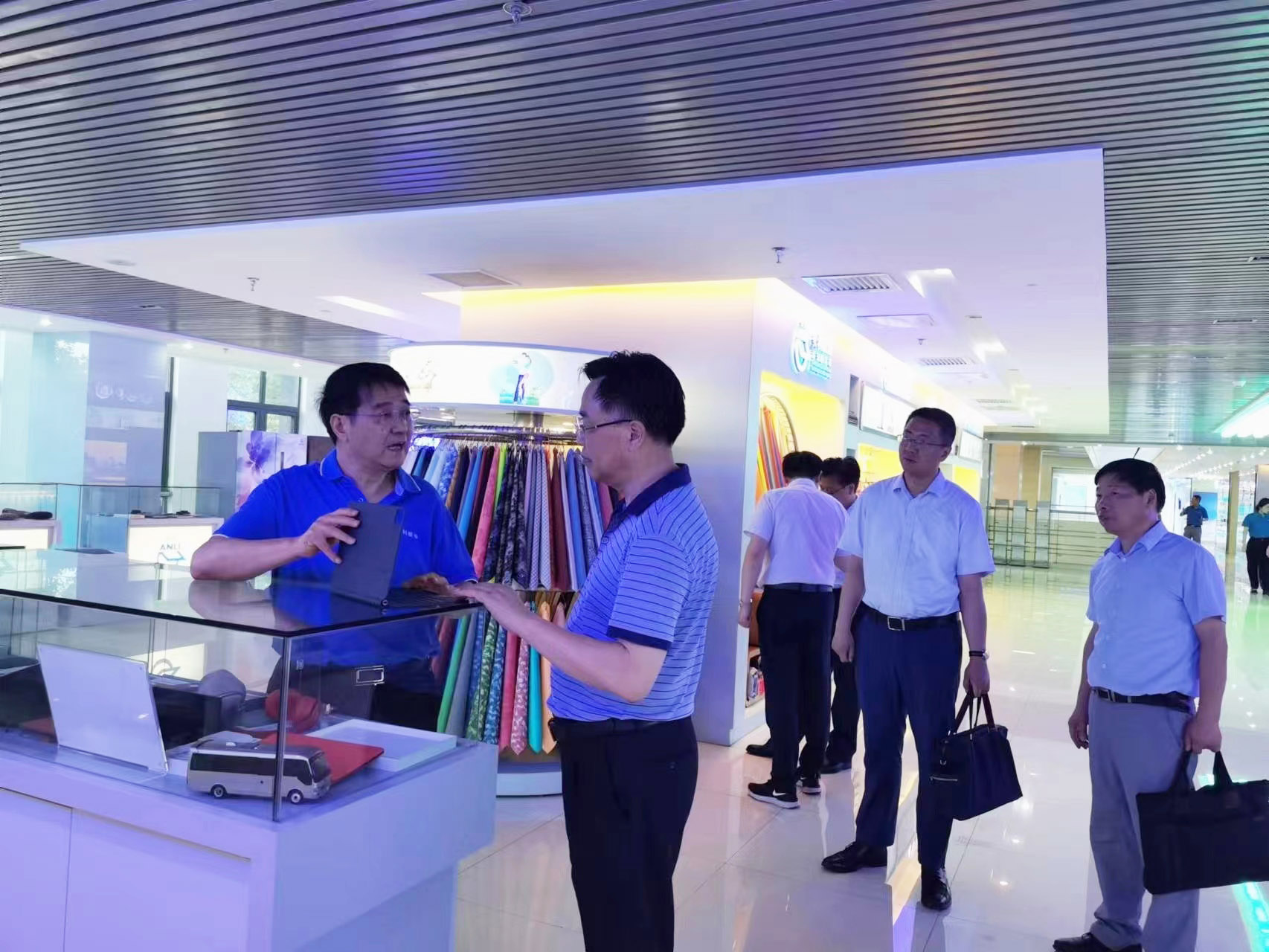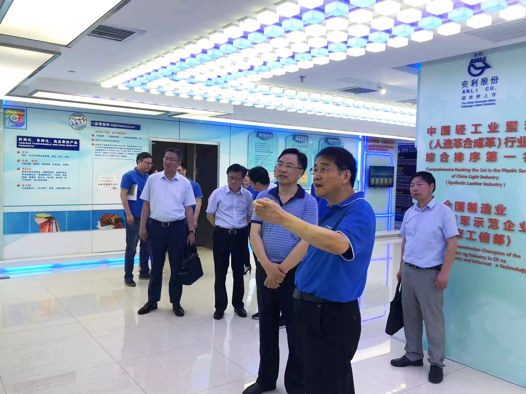 匡光力一行來到安利股份形象展廳,駐足觀看了企業宣傳片。姚和平簡要介紹了公司的發展曆程、技術創新和產品銷售等情況。在產品廳,匡光力一行饒有興趣地察看了安利股份的各種材料樣品,稱讚安利股份優秀的綜合實力和科技創新能力。