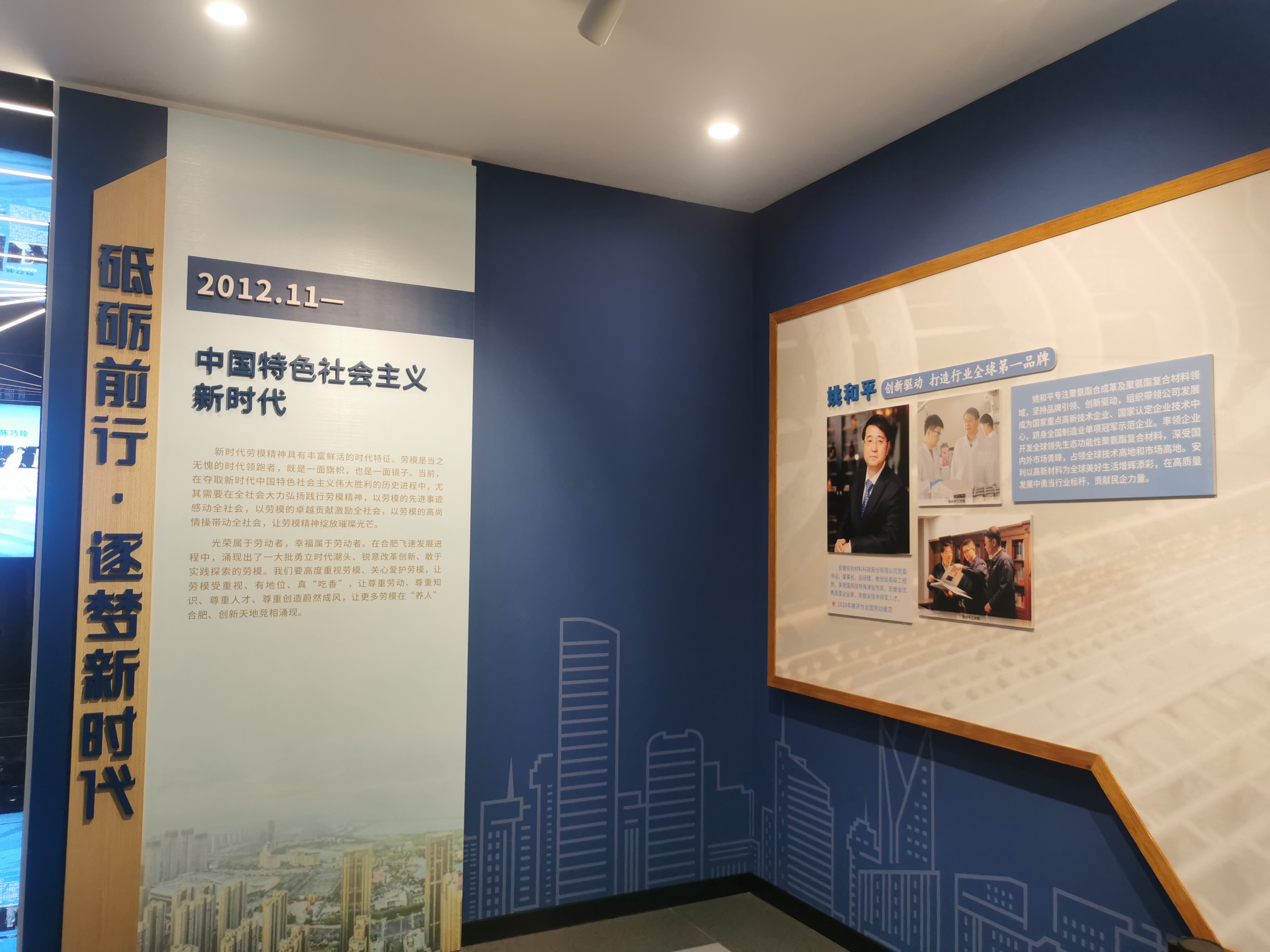 在講解員的帶領下,通過一張張老照片、一件件舊物件、一段段艱苦奮鬥的勞動故事,全方位、多角度、多層次感受了不同曆史時期合肥市各級各類勞動模範、能工巧匠的先進事跡、匠心工藝、創新成果,生動回顧了合肥工運事業發展的曆史變遷和光輝曆程。值得讓安利人引以為傲的是,走進“中國特色社會主義新時代”展廳,首先映入眼簾的新時代勞動模範是公司董事長、總經理、全(quan)國(guo)勞(lao)動(dong)模(mo)範(fan)姚(yao)和(he)平(ping),講(jiang)解(jie)員(yuan)生(sheng)動(dong)的(de)講(jiang)解(jie)了(le)姚(yao)和(he)平(ping)董(dong)事(shi)長(chang)帶(dai)領(ling)安(an)利(li)從(cong)一(yi)家(jia)瀕(bin)臨(lin)倒(dao)閉(bi)的(de)企(qi)業(ye),從(cong)小(xiao)到(dao)大(da),由(you)弱(ruo)到(dao)強(qiang),成(cheng)長(chang)為(wei)全(quan)球(qiu)聚(ju)氨(an)酯(zhi)複(fu)合(he)材(cai)料(liao)行(xing)業(ye)的(de)“隱形冠軍”的先進事跡,姚和平“永不懈怠、永不自滿、勇往直前、勇爭一流”的精神是新時代勞模精神的最好詮釋。在場的安利人們難掩激動,鼓掌、拍照,一張張笑臉上無不體現著自豪與驕傲。