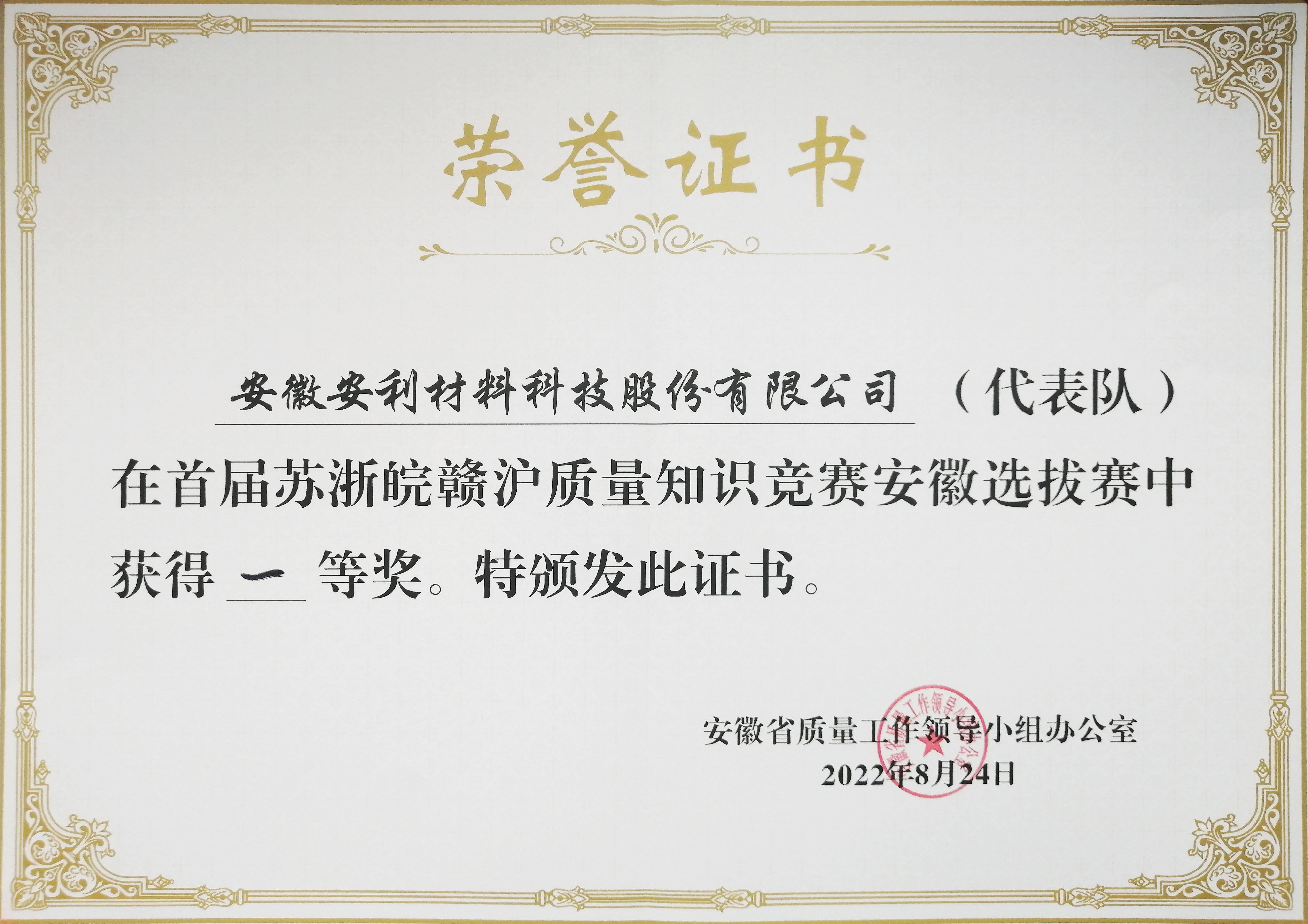 選拔賽一等獎!安利股份將代表安徽出戰“首屆蘇浙皖贛滬質量知識競賽”